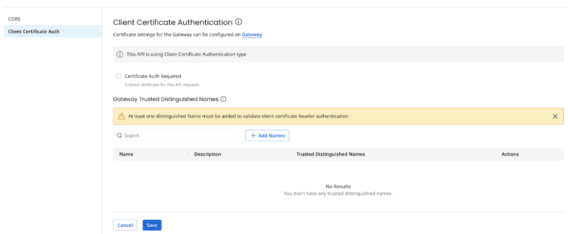 - Certificate Auth Required - If selected, certificate will be enforced on all API requests.