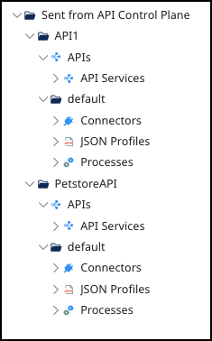 After you send the API specification to Boomi Integration, a folder named Sent from API Control Plane is created with all the API and process information.