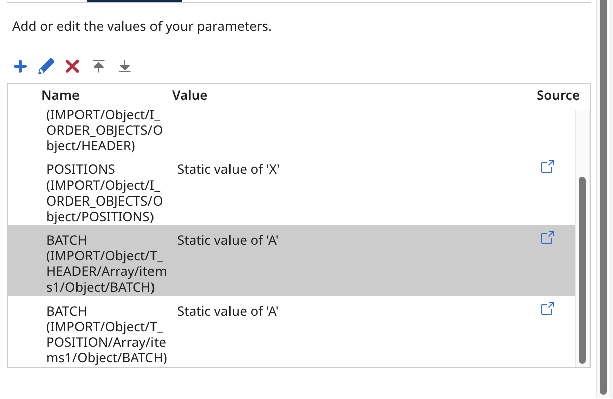 T_HEADER-BATCHis passed as A.T_POSITION-BATCHis passed as A.BATCH (IMPORT/Object/T_HEADER/Array/items1/Object/BATCH)