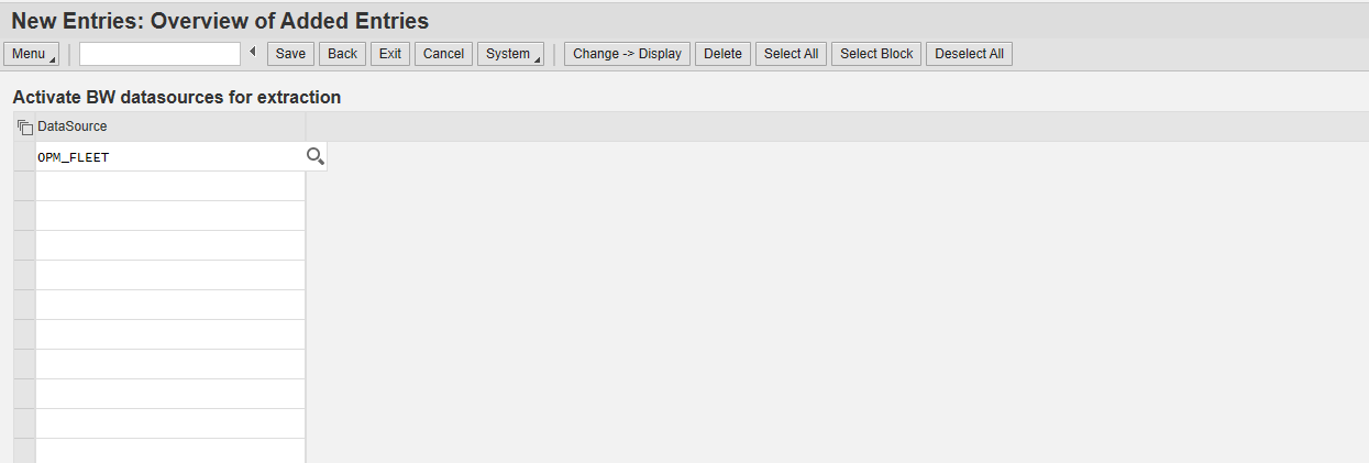 /IXBX/ZBX006: 'Send BW Data Extractor' and click on the New Entries button.