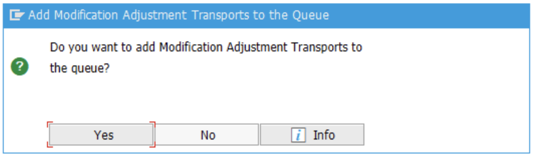 - In the pop-up, confirm adding modifications or adjustments to the transport queue: