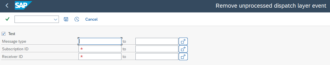 This transaction lets the removal of data generate for the dispatch layer that should not be sent. This can occur due to the deletion of a subscriber or receiver or changing pointer message types for Boomi for SAP settings.