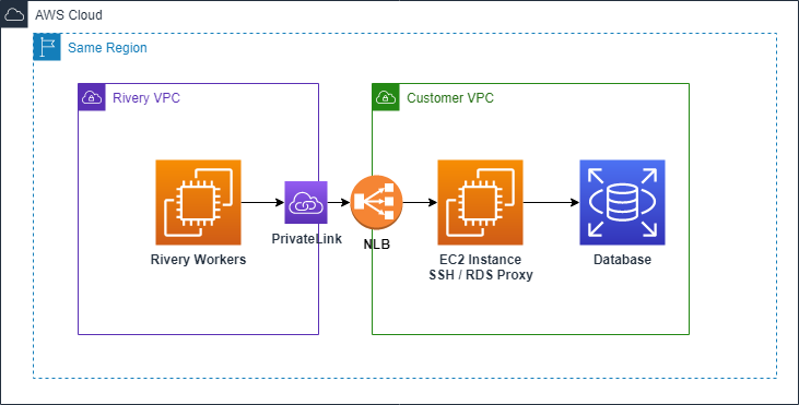 whitelistit in your Endpoint service (depending on the region):arn:aws:iam::012922587834:root– for EU (eu-west-1.console.rivery.io) and US (console.rivery.io)arn:aws:iam::339713088687:root– for Israel (il-central-1)arn:aws:iam::772591076045:root– for Australia (ap-southeast-2)