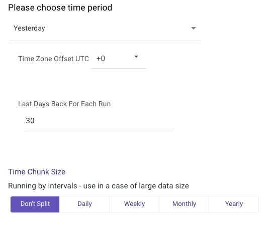 Last Days back: Use this to pull data from a given number of days before the start date.