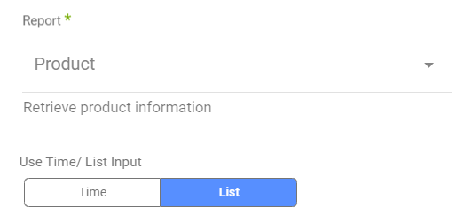 Most of the reports in ShipHero depend on time. The order, product, return, and purchase order reports include an additional option to provide an ID list. In the ID list type, you can filter by a specific ID, if required, or leave the field empty to pull all the IDs by selecting the List type.