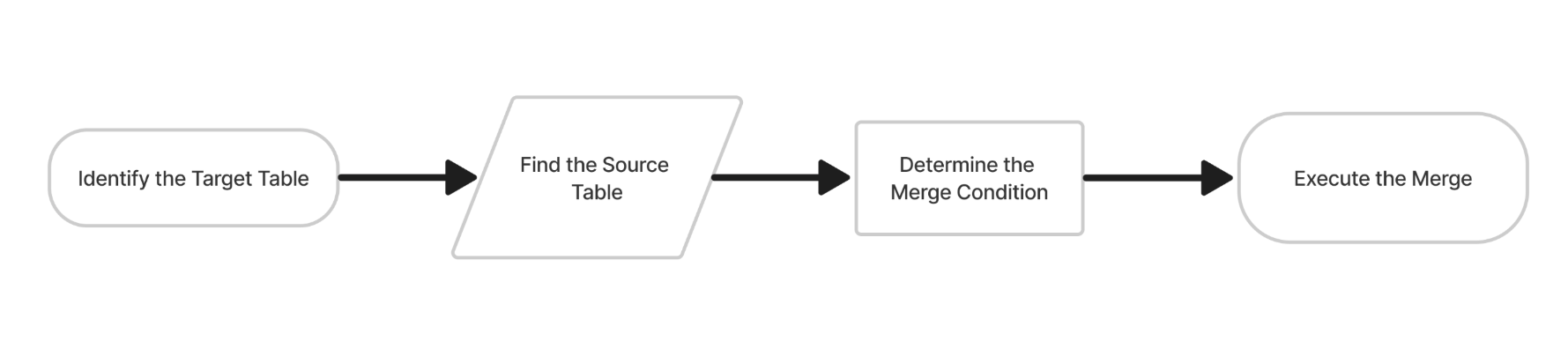 The Merge method applies updates and inserts directly into the Target table using a MERGE INTO statement. This method is efficient for incremental updates where only a subset of records changes.