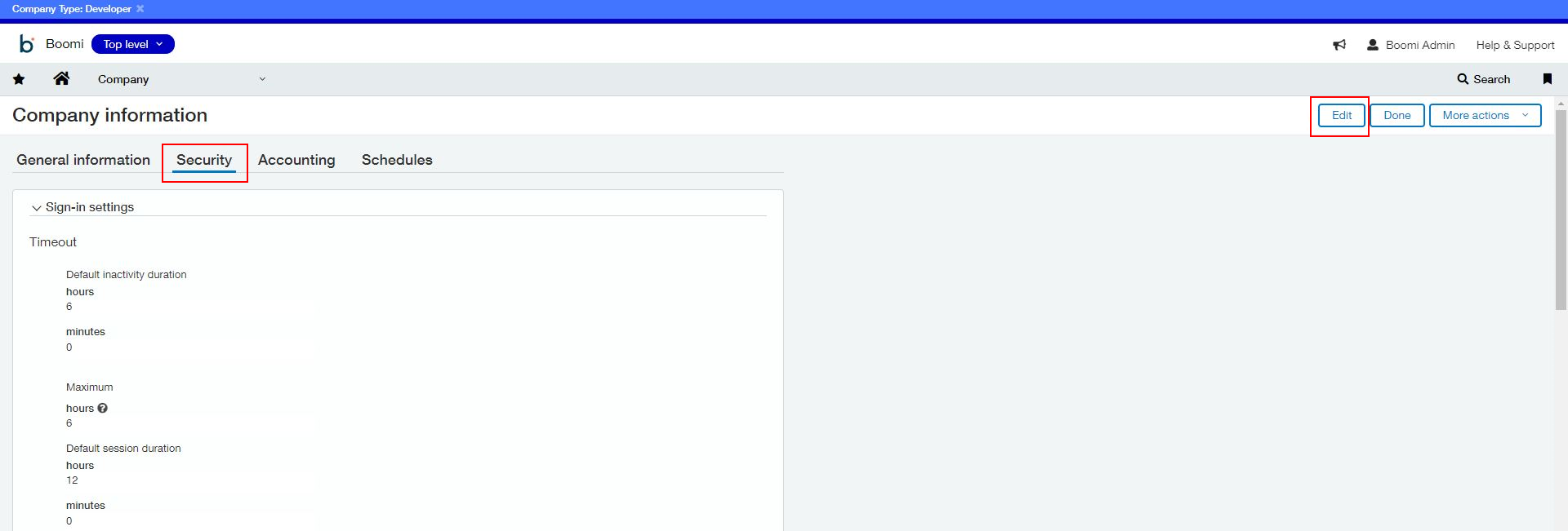 - From the Company Information menu, select Security, then Edit.