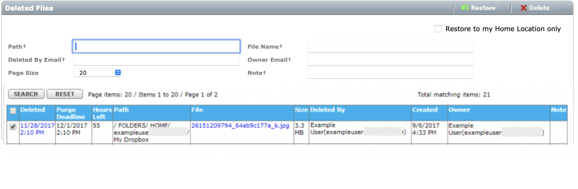 If files cannot be restored to their original location, they will be restored in Retention Restore folder under the Administrator’s home folder.