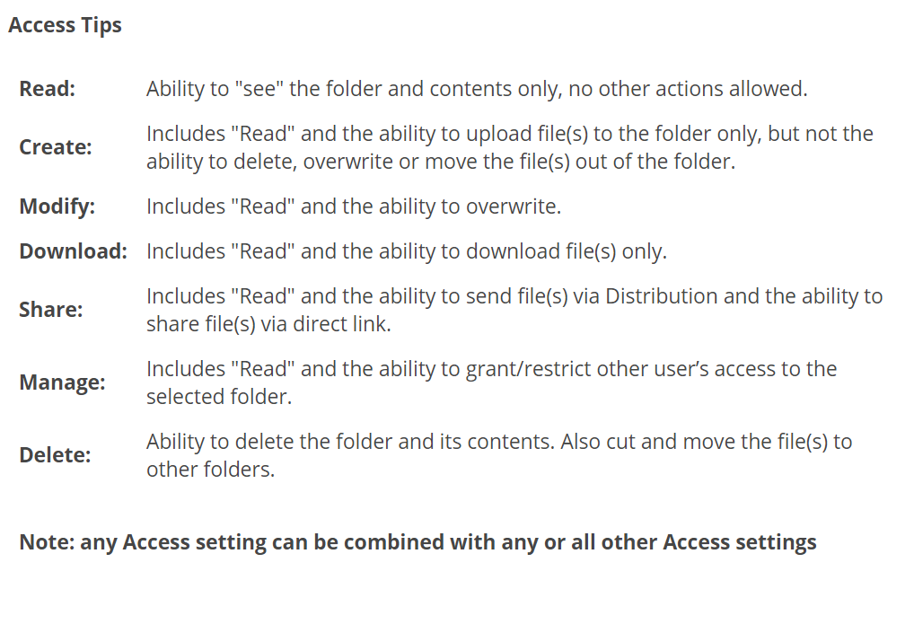 You can provide the folder access to users and groups on your MFT site. Access to a folder provides a visibility to all its contents, including sub-folders.