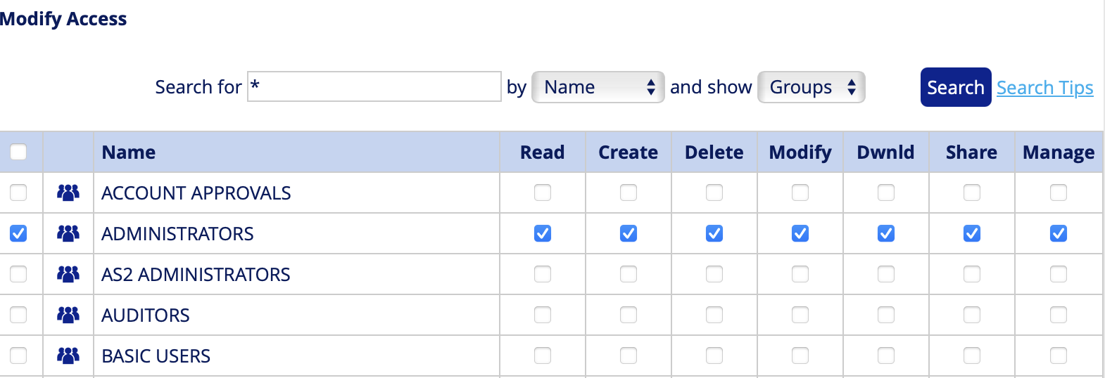 Modifying access to groups