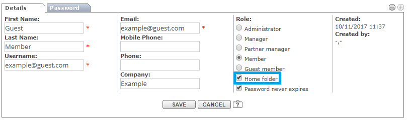 Select a "Home" folder when converting a guest to a member.
